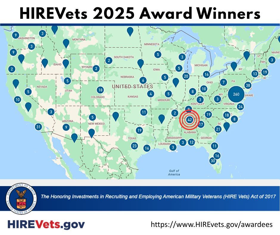 We’re also fortunate to call Huntsville, Alabama home, a community with the second-highest concentration of HIRE Vets Awardees in the nation, right behind Washington, D.C. Huntsville’s Veteran-friendly, mission-focused culture strengthens everything we do and fuels our shared commitment to service.